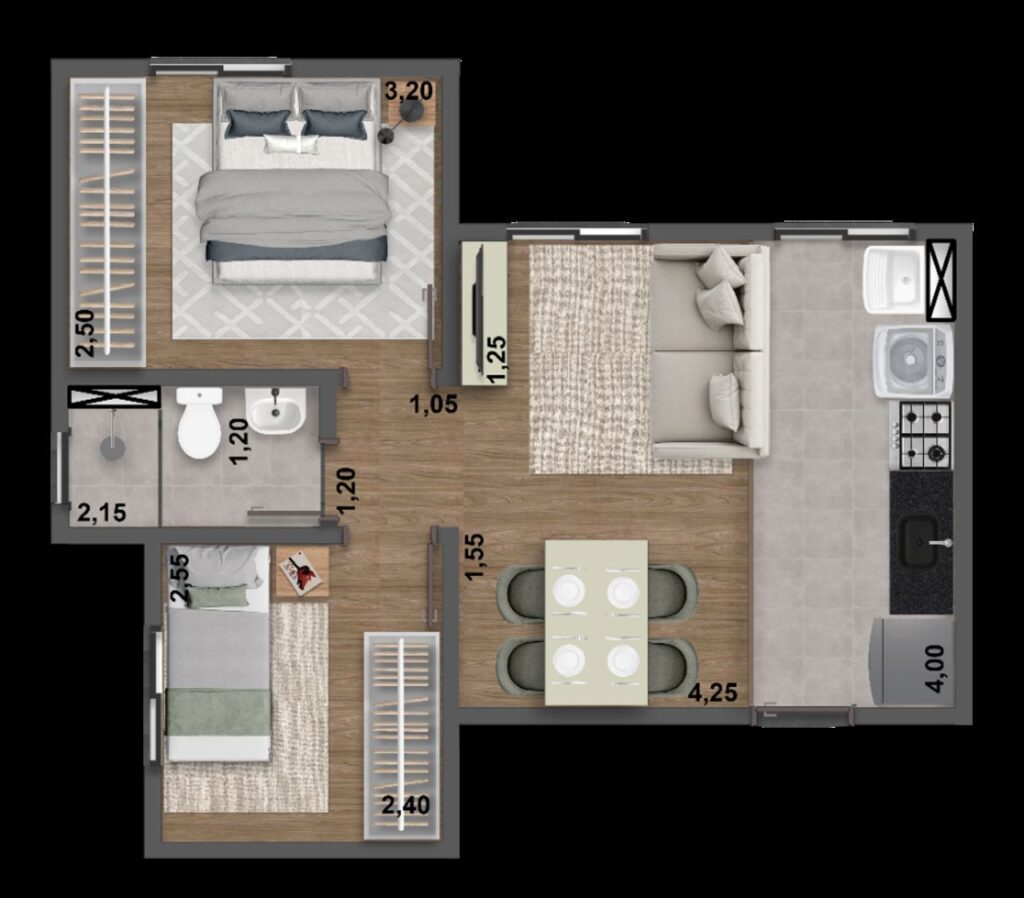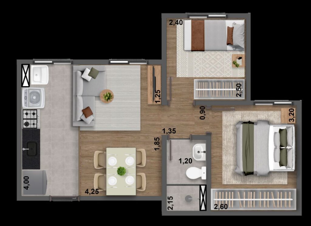 O grande diferencial está na otimização do espaço, algo muito importante para quem busca primeiro imóvel.